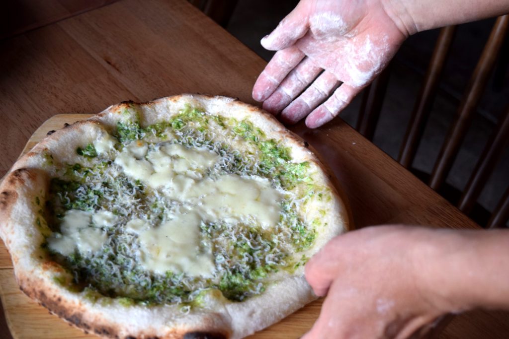 北海道江別産の小麦を使用し、溶岩石の窯で焼き上げる本格オリジナルピッツァです。