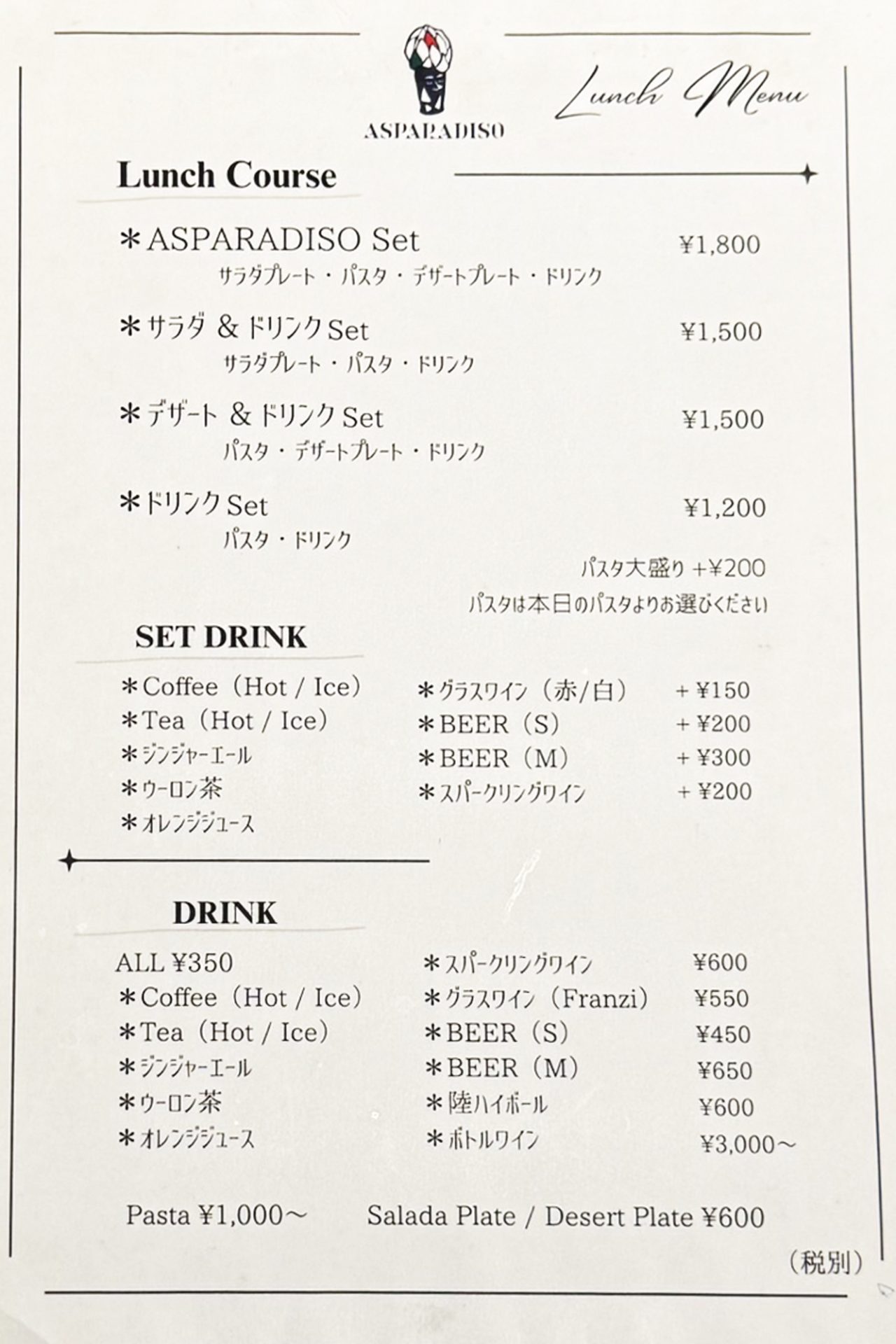 - ASPARADISO set ¥1,800 +tax